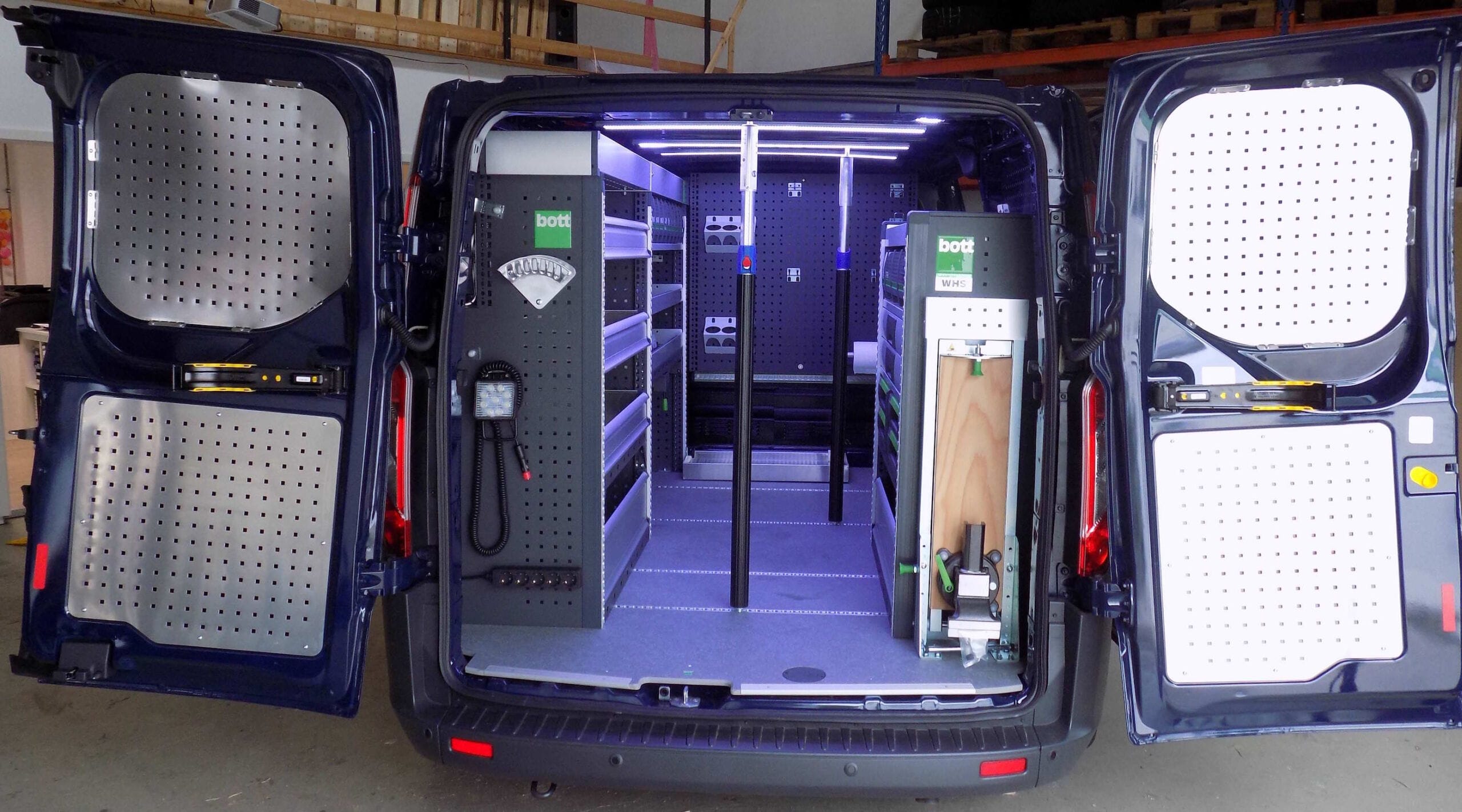 Dieses Fahrzeug wird zur Instandhaltung oder Reparatur von Industriemaschinen verwendet. Damit die Monteure alle Werkzeuge und Kleinteile bei den Kunden haben, wurde bei der Planung das gesamte Inventar der Fahrzeuge aufgenommen.